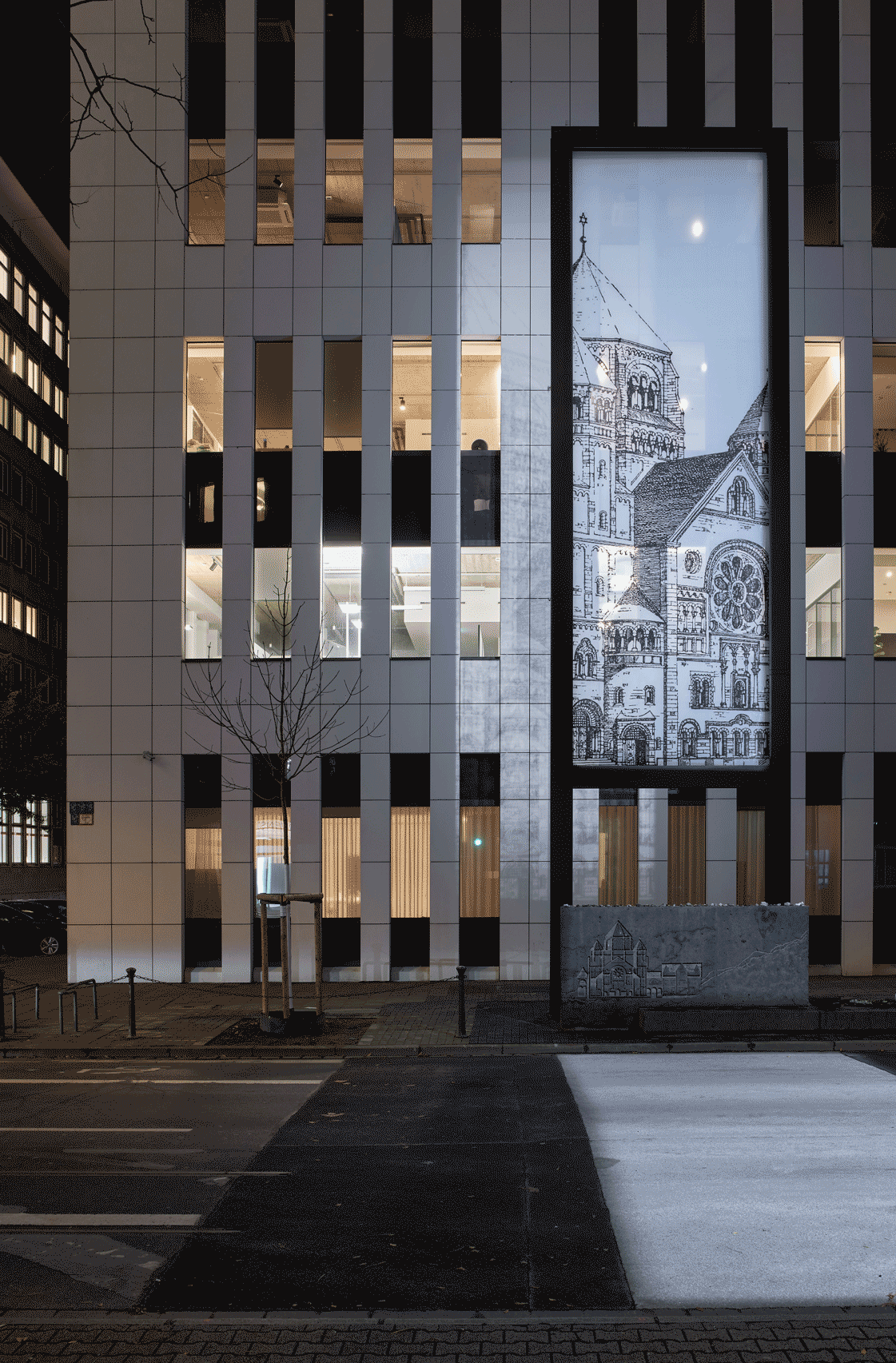 Mischa Kuball identifies a situation that often occurs but is rarely noticed in the urban environment of Graf-Adolf-Straße in Düsseldorf. Düsseldorf's central synagogue once stood on Kasernenstraße. During the November pogroms of 1938, it was set on fire on November 10 and finally demolished a few weeks later.